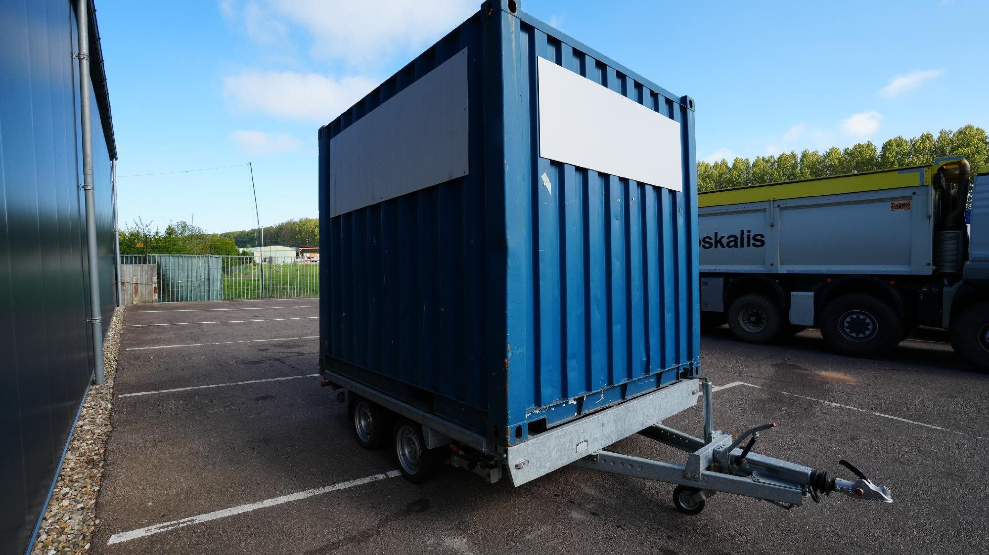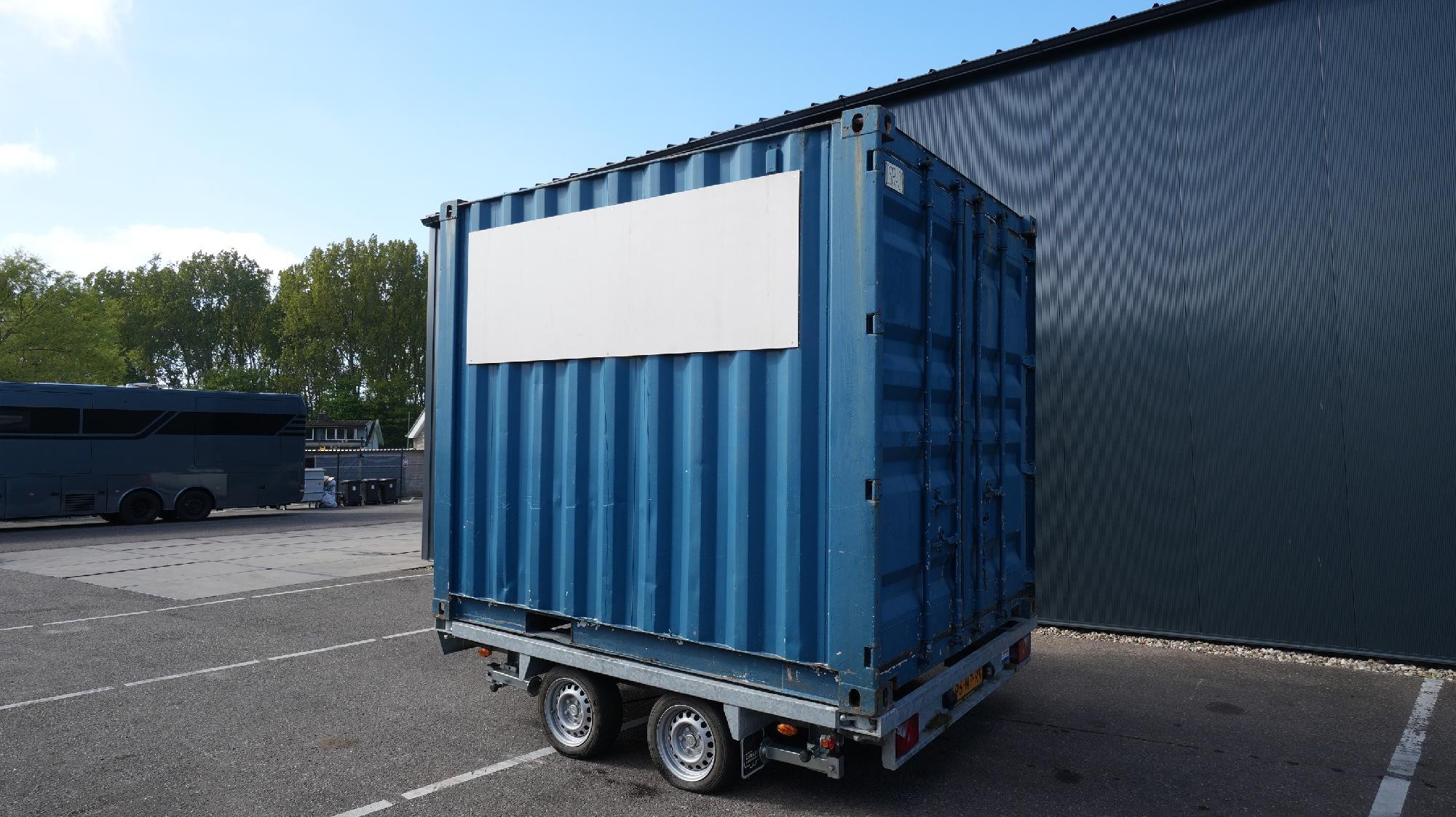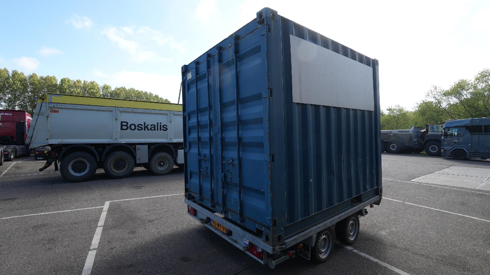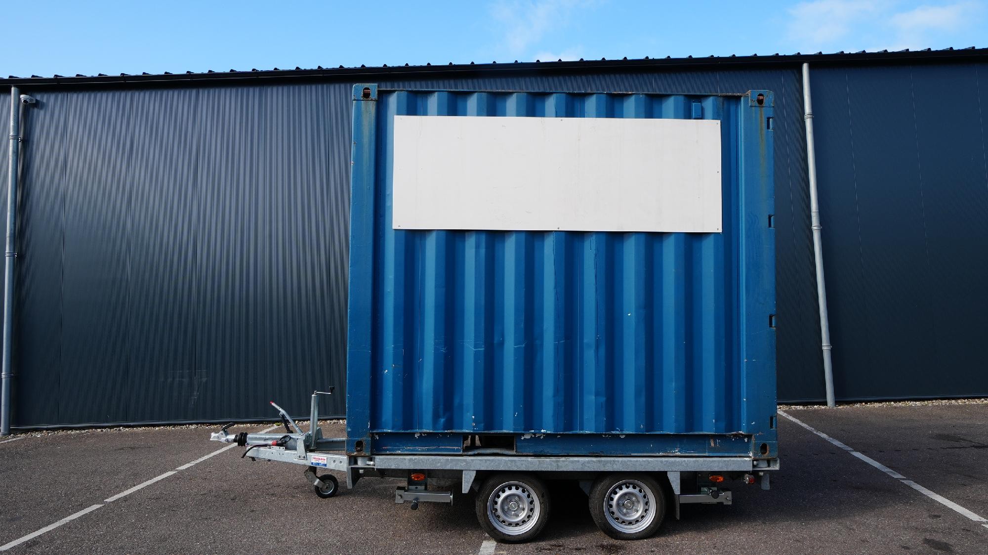 Reference number: 25935 Oosterwijk Container Transport Trailer • 10 ft container • 2 axles Equipped with: • Steel suspension • 4x support legs Trailer is in good condition. Available in our yard and ready to work.