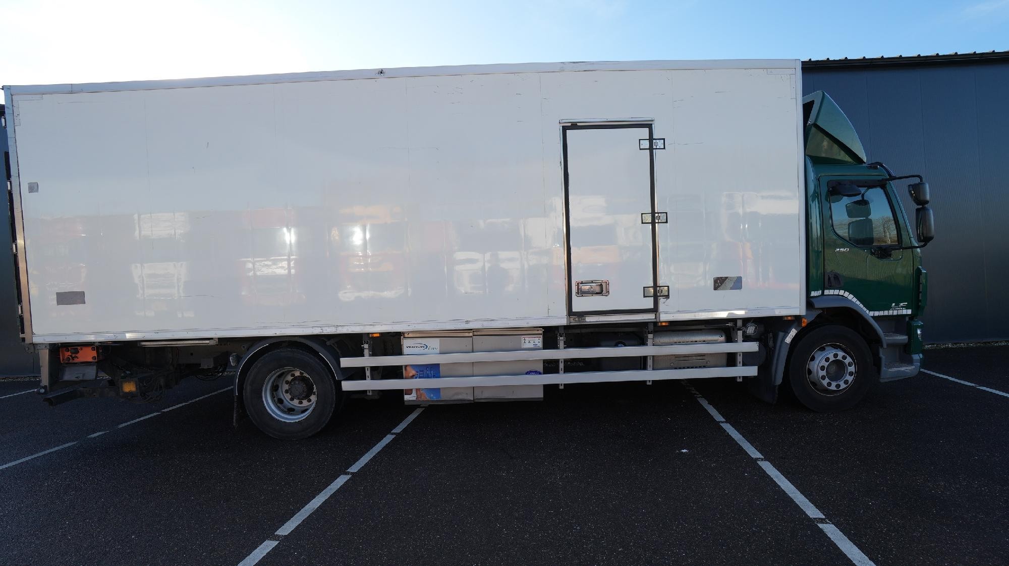 Reference number: 25747 Daf LF 250 frigo truck Equipped with ABS, air conditioning, aluminium fuel tank, Zepro tail lift, Euro 6 engine, AdBlue, digital tachograph, radio, spoilers, side door, steel / air suspension and automatic gearbox. Cargo space (frigo box): 755 x 250 x 245 cm. Carrier Vector 1950 MT cooling unit. Truck is in good condition. Mileage: 368,000 km. Available in our yard and ready to work.
