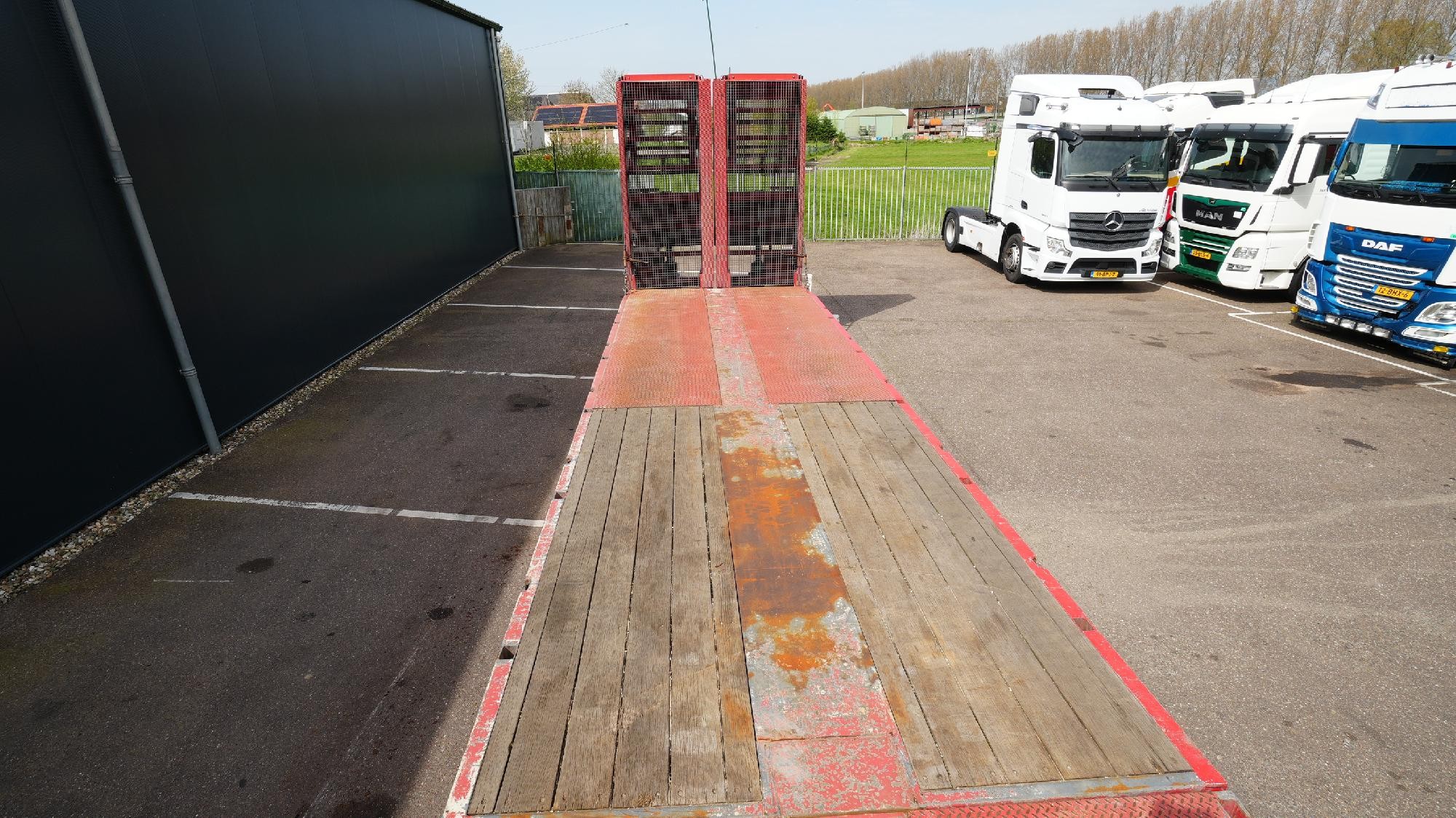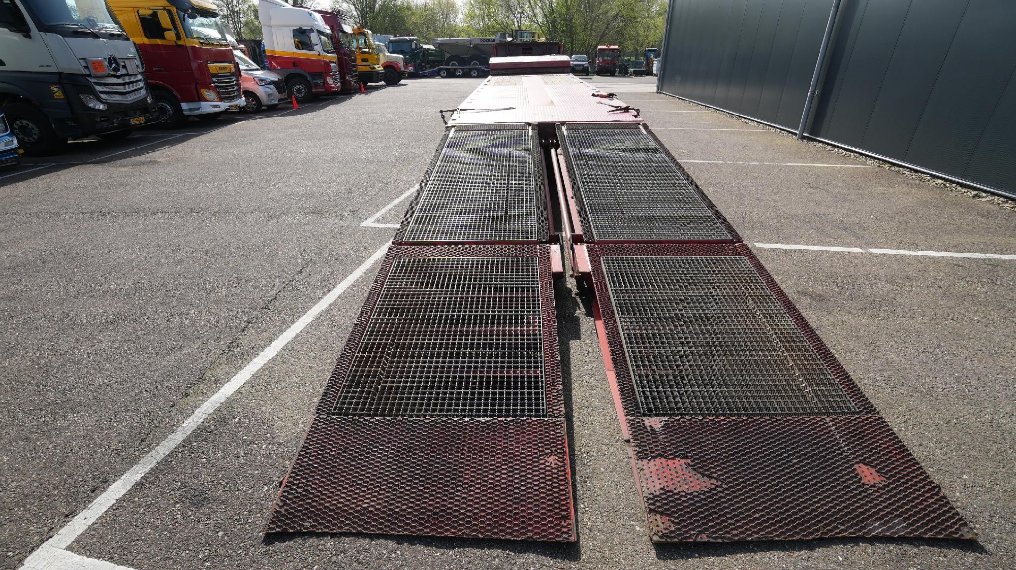 The trailer is extendable up to a total lower deck length of 1,550 cm. Upper deck length: 410 cm. Lower deck length: 950 cm.
